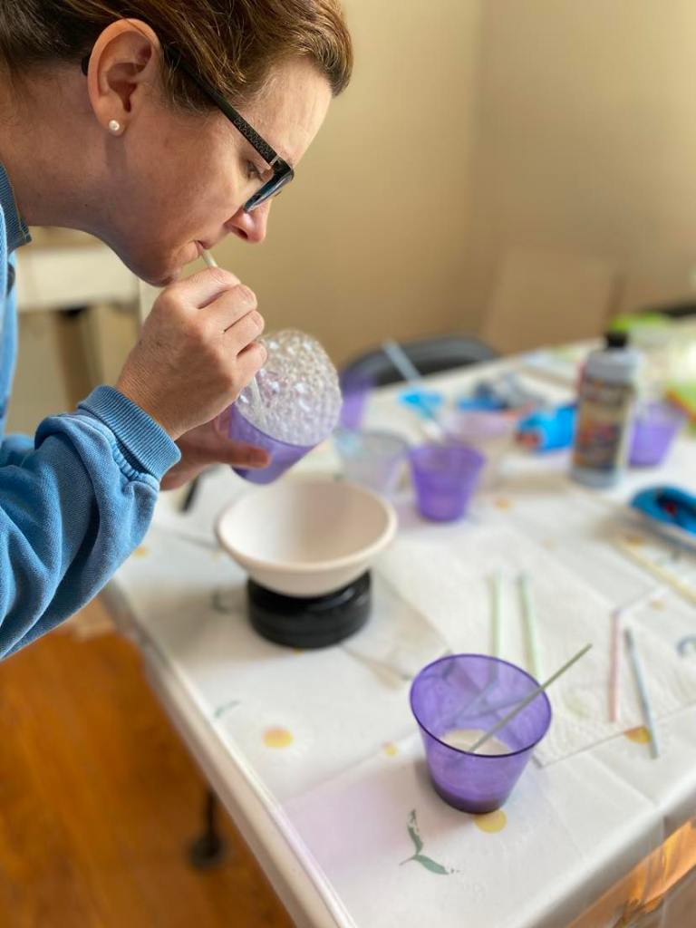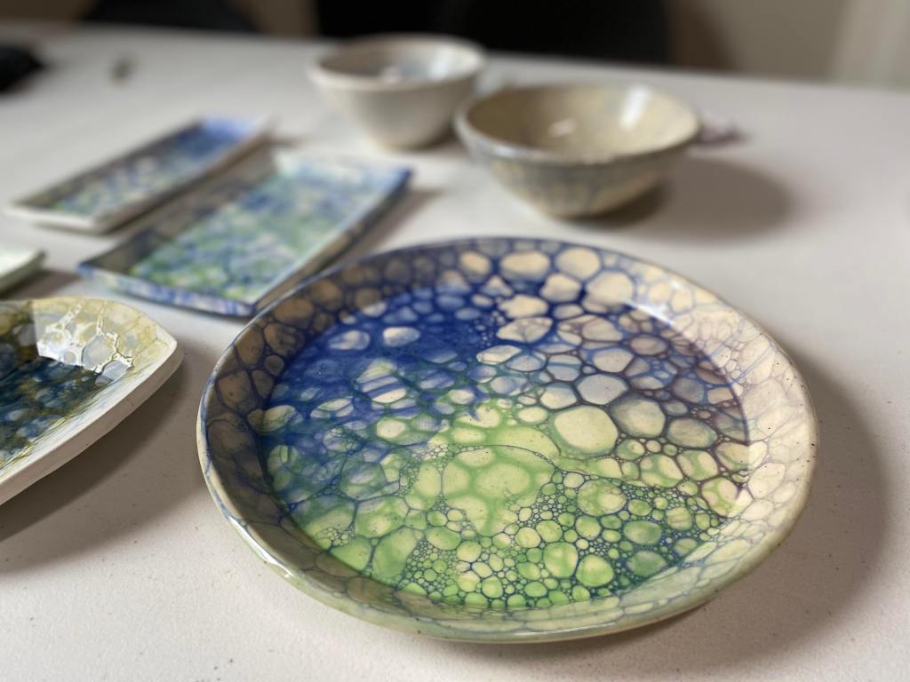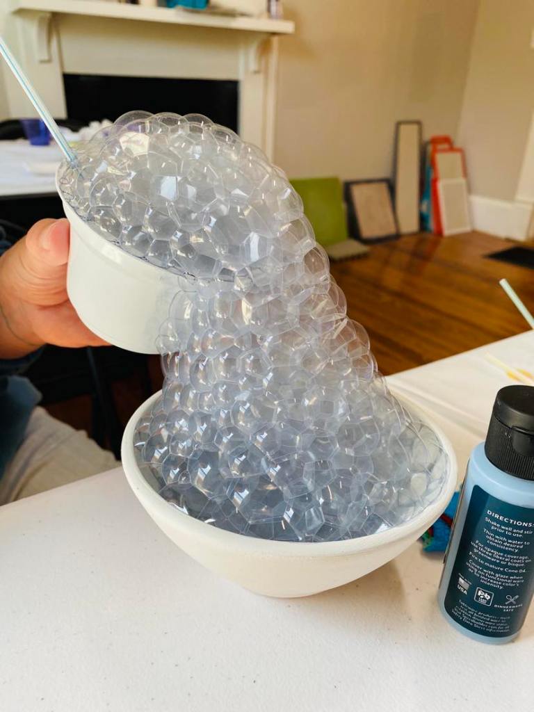 If you want to laugh until you cry, blow bubbles with friends. We had such a fun afternoon learning this glazing technique.