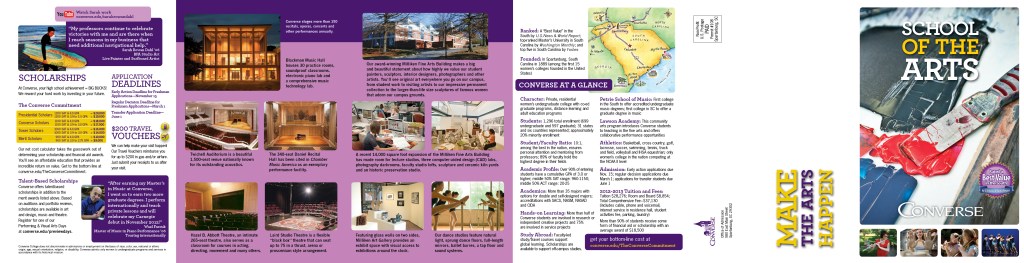 I conceptualized, designed, and pitched this brochure to the Dean of the School of the Arts. Upon approval, I then wrote the copy and art directed the photoshoots (or took the needed photos) and art directed the map illustration.