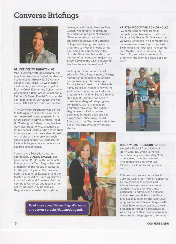 The Converse alumnae magazine also included short content that I researched through interviews, wrote, and designed for a fresh approach to alumnae updates.