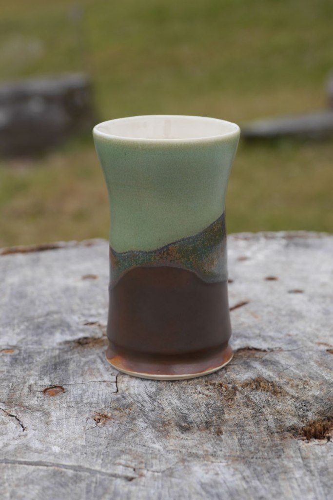 Mayco Green Tea and Black Walnut; Amaco HF-9 Clear