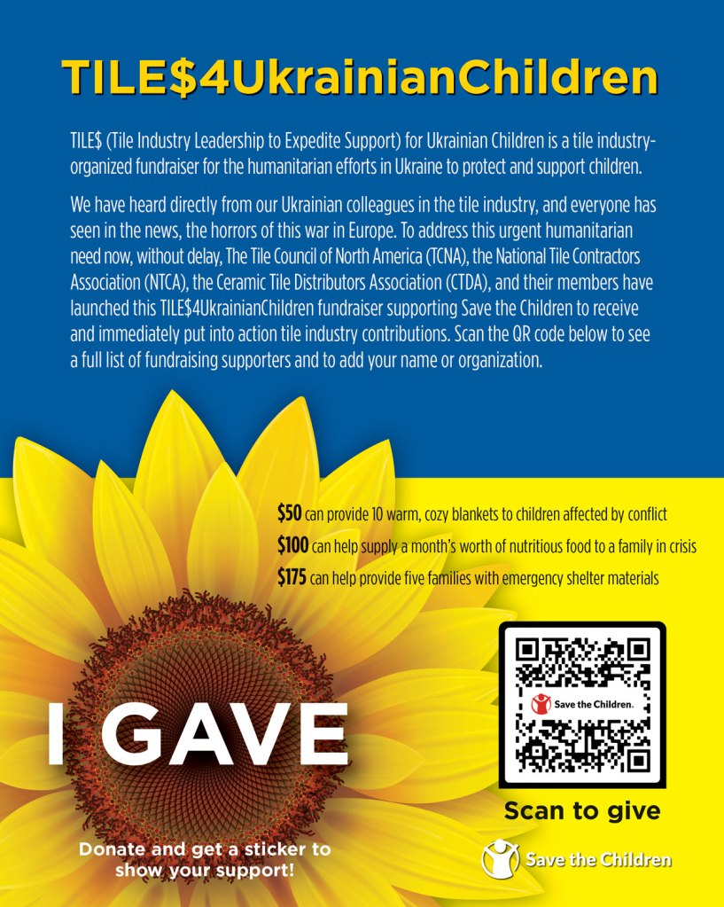 The ceramic tile industry has strong, historical roots in Ukraine. When the war began, several tile manufacturers sent aid to their Ukraine colleagues. TCNA sought a way to make a collective impact. Just days before TCNA’s trade show, Coverings, I was asked to develop a fundraising effort. I researched charities that could best use the funds we collected, created the graphics, crafted the donor appeal and thank you messages, and set up an online donation portal. We had a table at the show and also presented to groups gathered for presentations. We raised over $183,000 in three days for Save the Children. Donations ranged from $1 to $20,000.